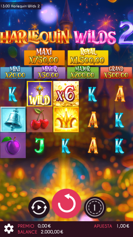 ¡Los arlequines vuelven a brillar en Harlequin Wilds 2! Esta nueva entrega eleva el espectáculo con un deslumbrante trabajo de animaciones y una puesta en escena más vibrante que nunca. Disfruta de los seis tipos de jackpots, la fase Link Bonus y los Wilds de hasta tres alturas con multiplicadores. ¡Una secuela más grande, más colorida y llena de premios!