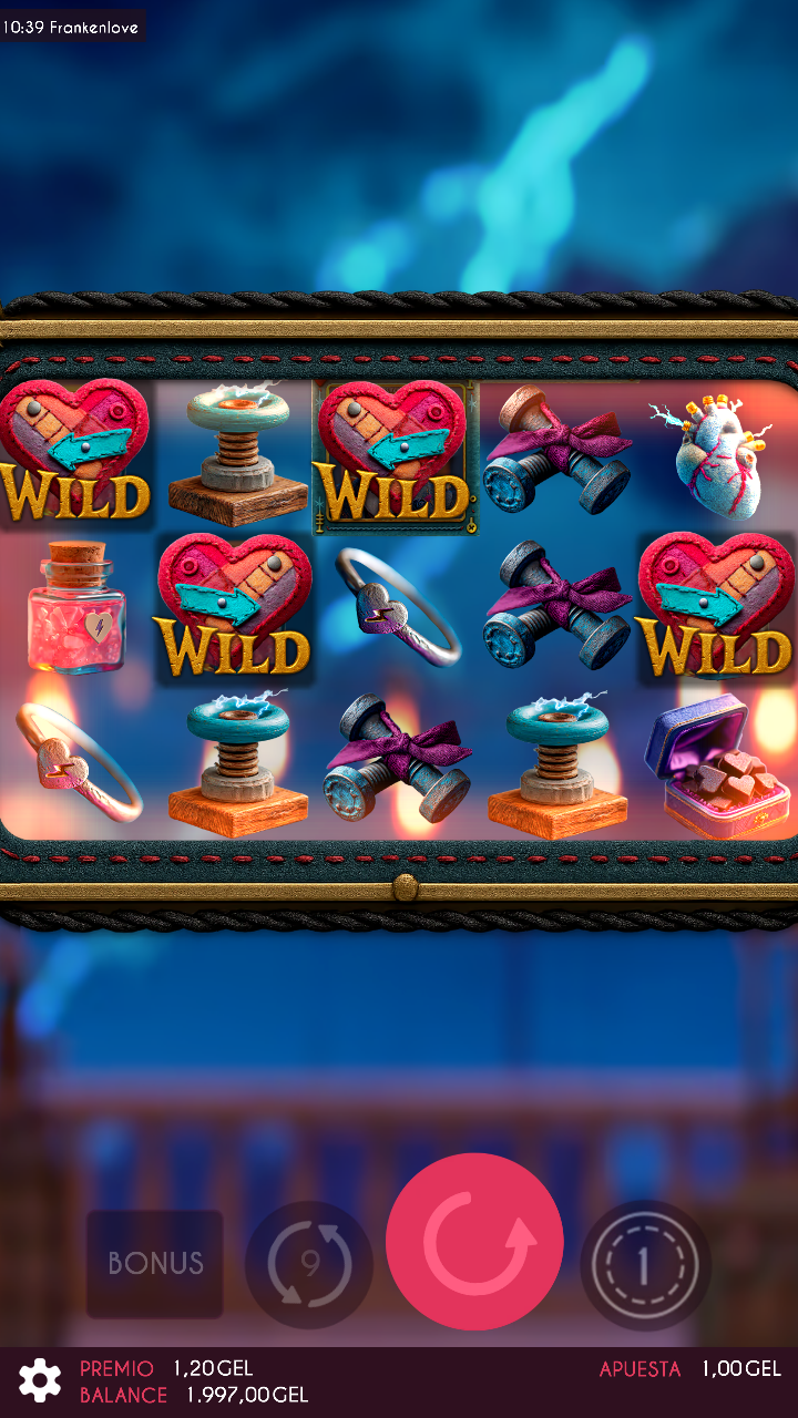 Unveil the strange yet romantic tale of Frankenlove, where Frankenstein and his beloved come alive on the reels. Wrapped in velvet textures and handcrafted details, every spin creates a unique atmosphere. Walking Wilds move across the reels to bring the lovers together and spark big wins. An immortal romance with electrifying rewards!