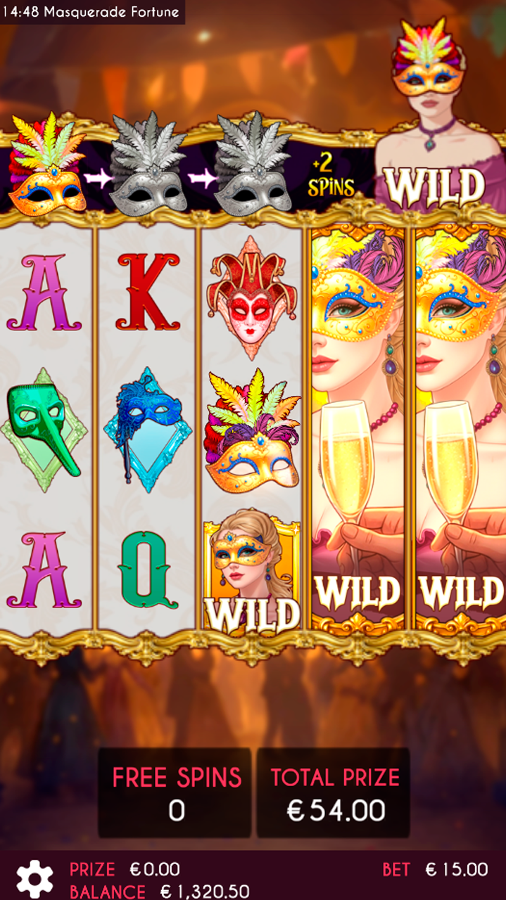 Step into a celebration filled with elegance, secrets, and hidden fortune. This 3×5 slot with 25 paylines invites you to discover its Free Spins feature with extra spin progression, where massive locking Wild symbols can transform every combination into major wins. With the Buy Bonus option, the right mask can change your destiny in an instant.